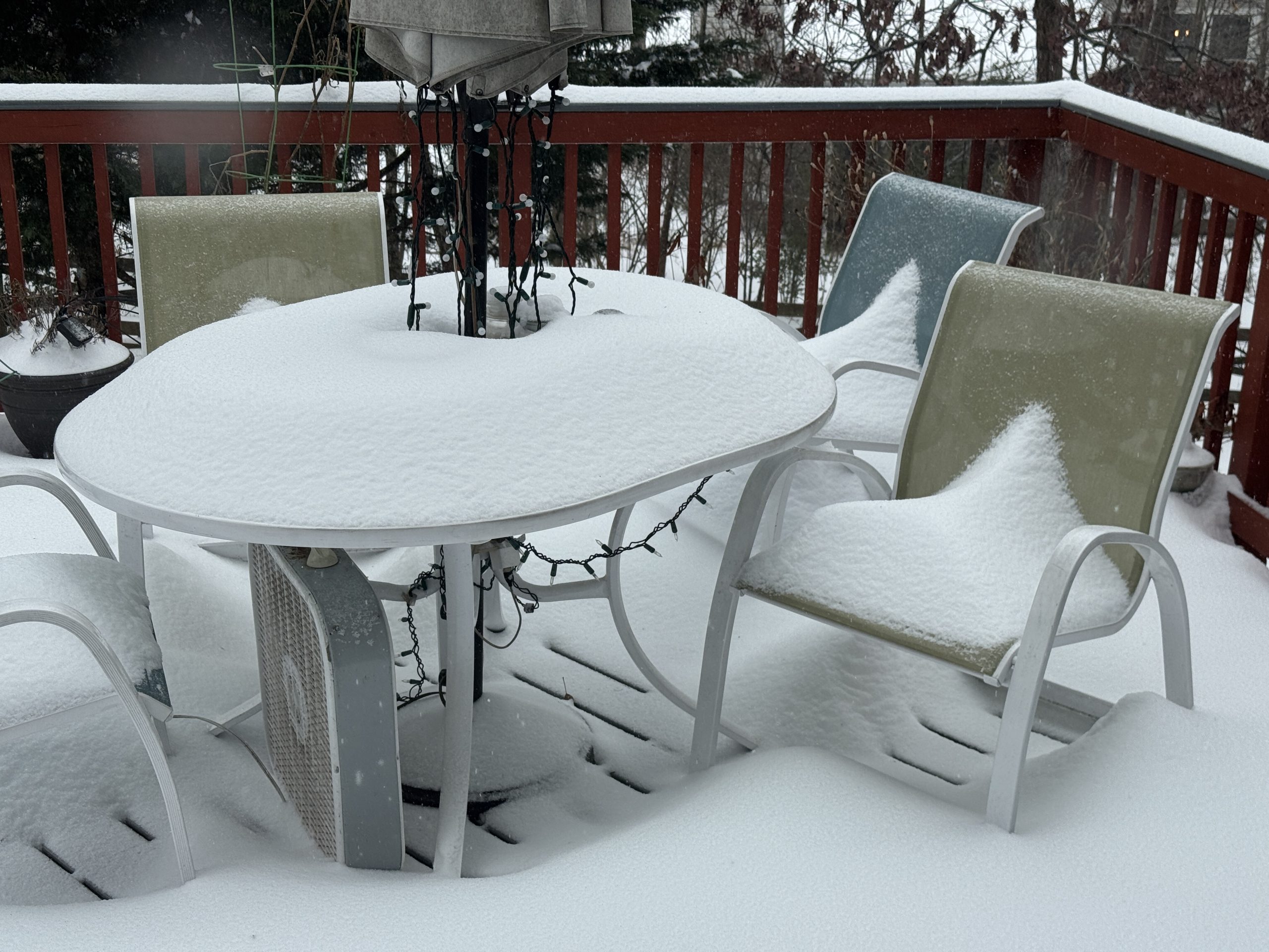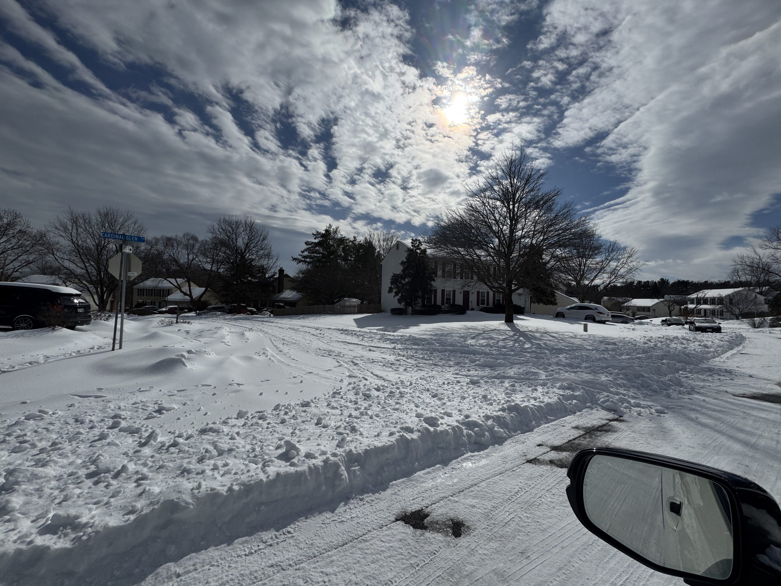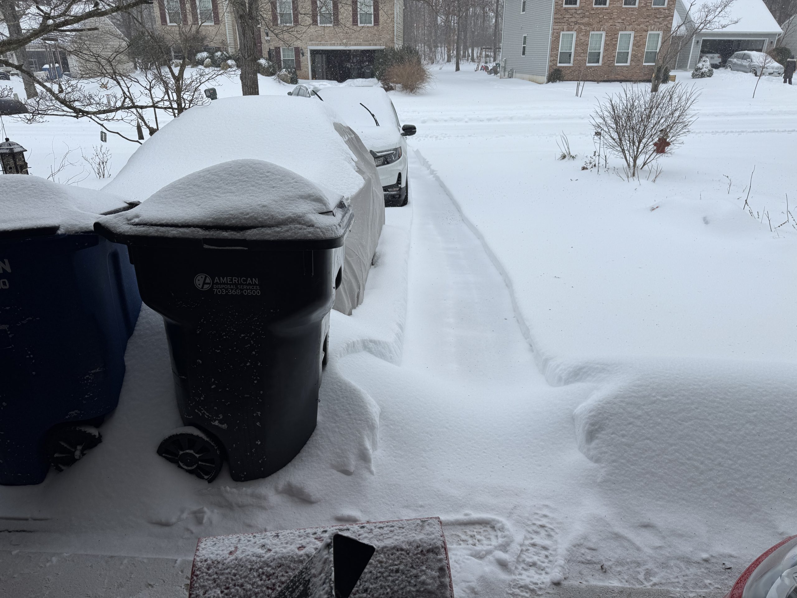 We had several inches of sleet on top of 6-8″ of snow yesterday, so if you didn’t clear your drive then good luck today-\ But at least the sledding will be great-)